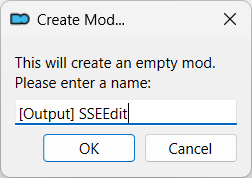 Create the [Output] SSEEdit mod to store the output generated by running SSEEdit: